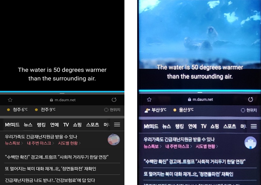잘 보이시나요? 넷플릭스 화면이 짤리신다면 화면 크기를 조정해 주세요. (두 손가락으로.. 아시죠? ^^) 원하는 크기로 자유자재로 되진 않지만 화면에 맞게 영상과 자막이 나오게 됩니다.