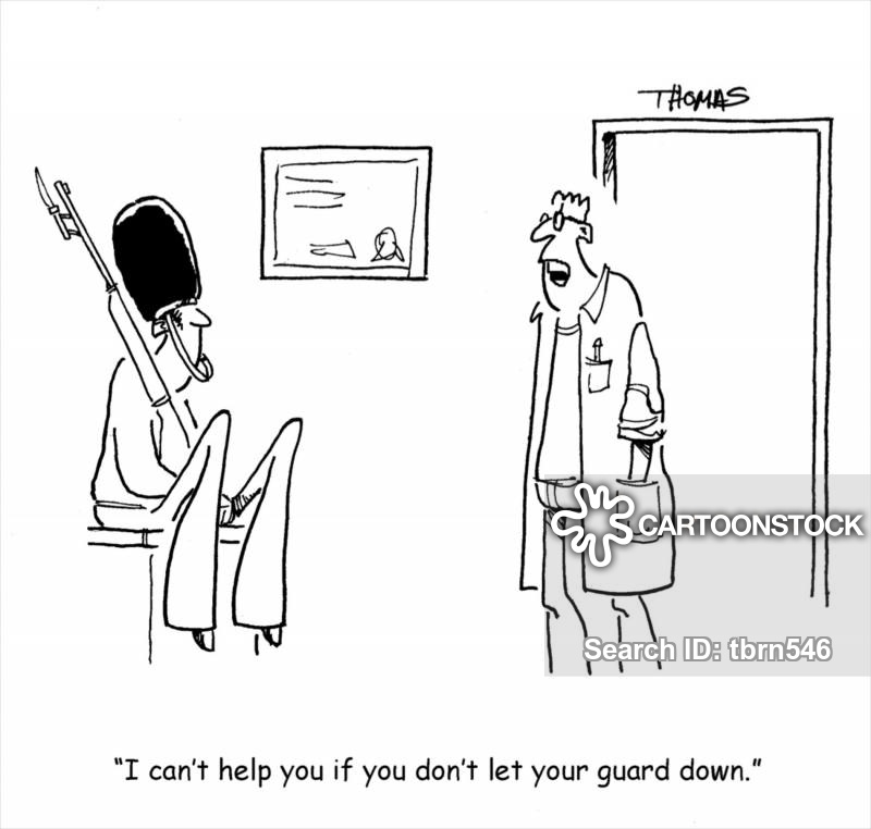 let one's guard down