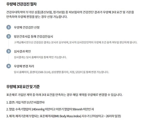 우선 제가 가입되어 있는 삼성생명의 경우 우량체 전환 기준이 있어요.