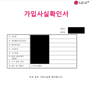 유플러스 홈페이지에 접속하여 “가입확인서” 검색을 하니 본인 것은 확인 및 출력이 가능하도록 바로 메뉴가 나오더라구요. 그런데, 제가 필요한 것은 아이 명의 워치폰의 ‘가입확인서’ 라는거.. 제가 아이의 이용요금이나 내역은 확인이 바로 가능하지만 가입확인서는 홈페이지를 뒤져도 안나오더라구요.
