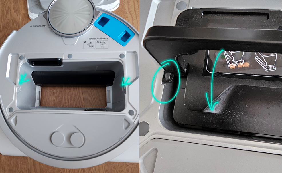 (저는 먼지필터가 어디 붙어있는지 확인할려고 덮개먼저 제거를 했습니다만,