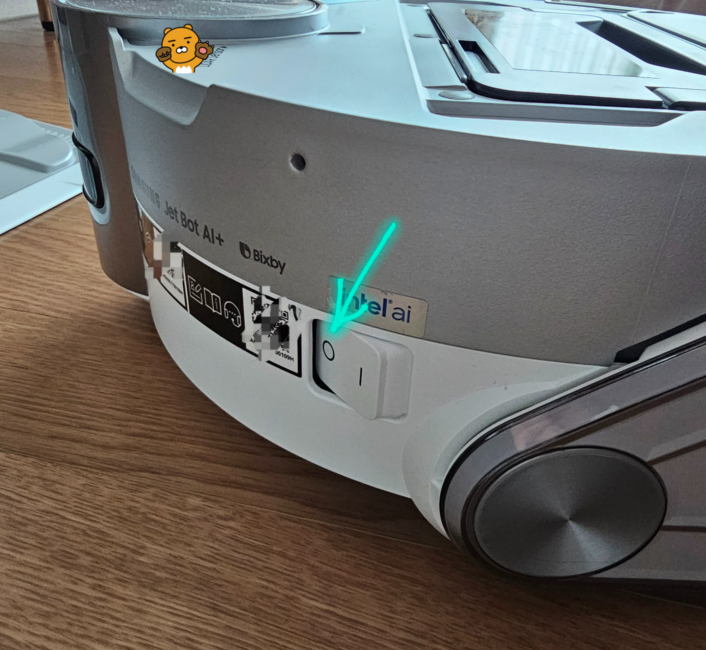 청소기를 스테이션에 꺼내서 제일 먼저 전원을 꺼줍니다.